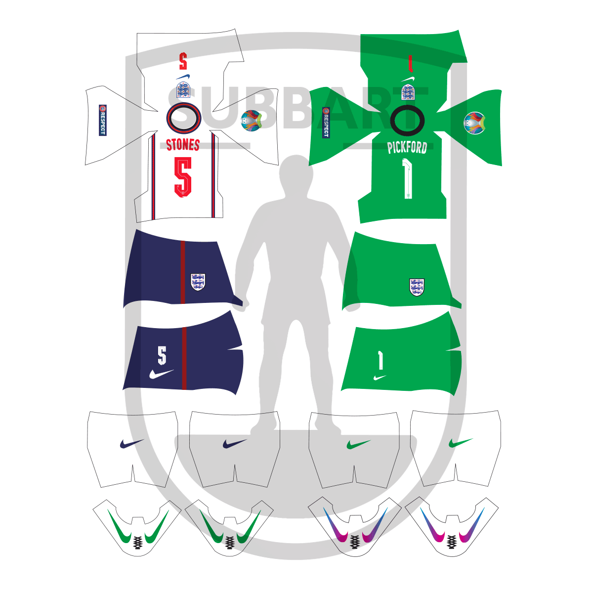 DECALS INGHILTERRA 2020 EUROPEO