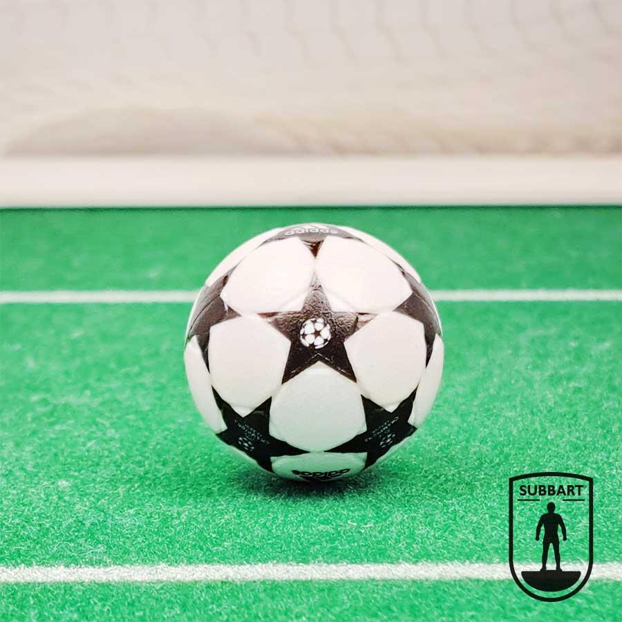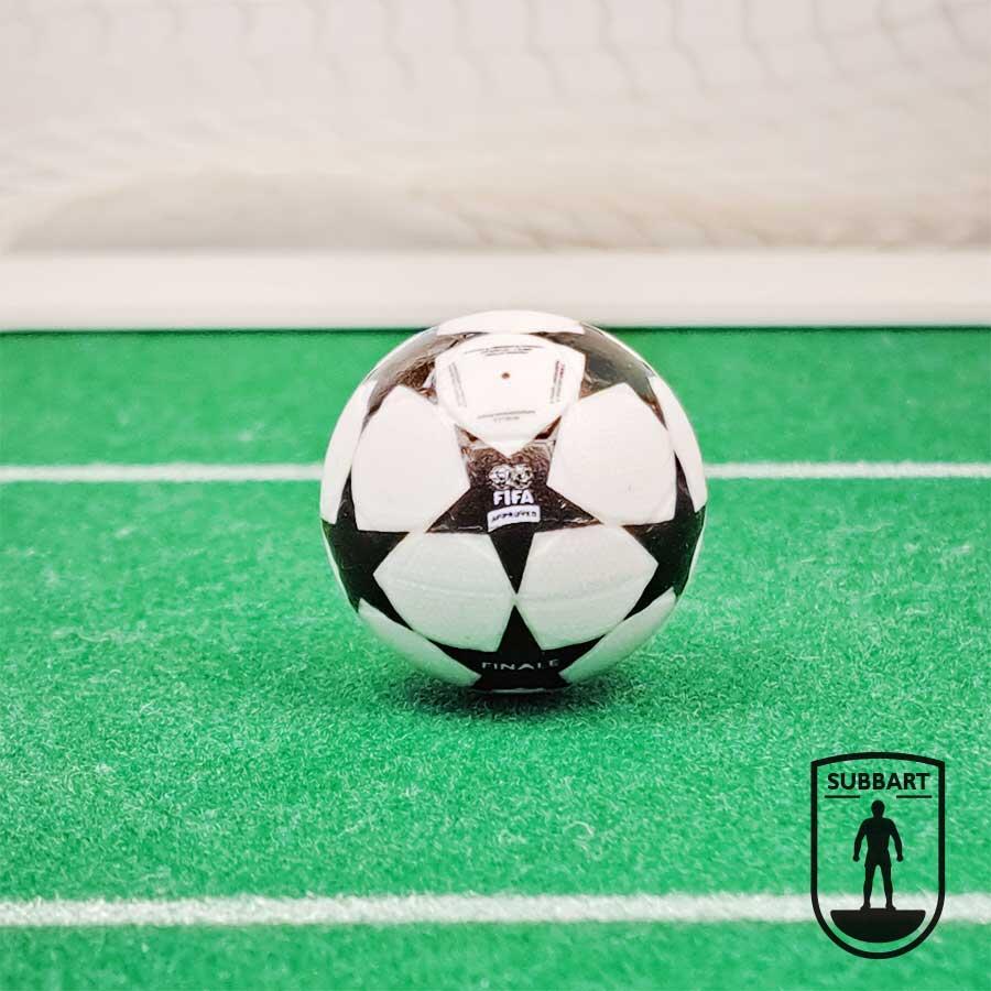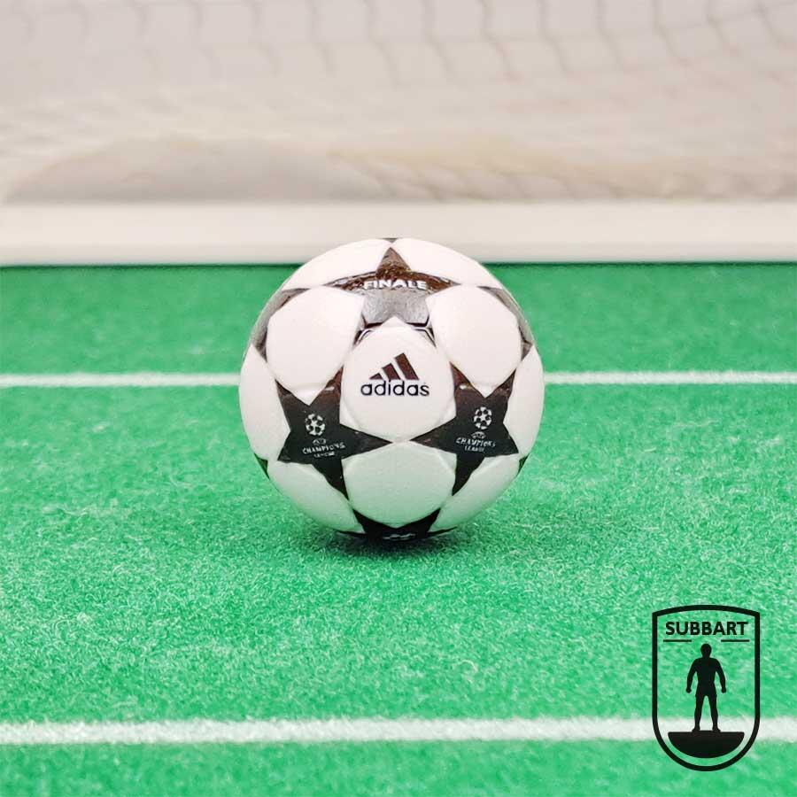 La pallina Subbuteo Champions League 2002/03 riproduce fedelmente il design del primo modello della linea “Finale” di Adidas.