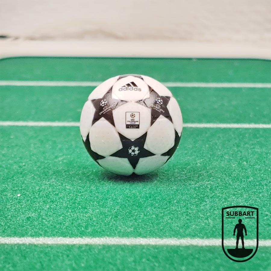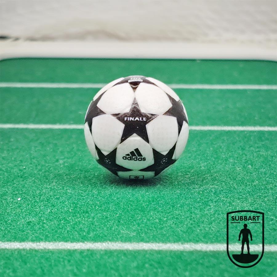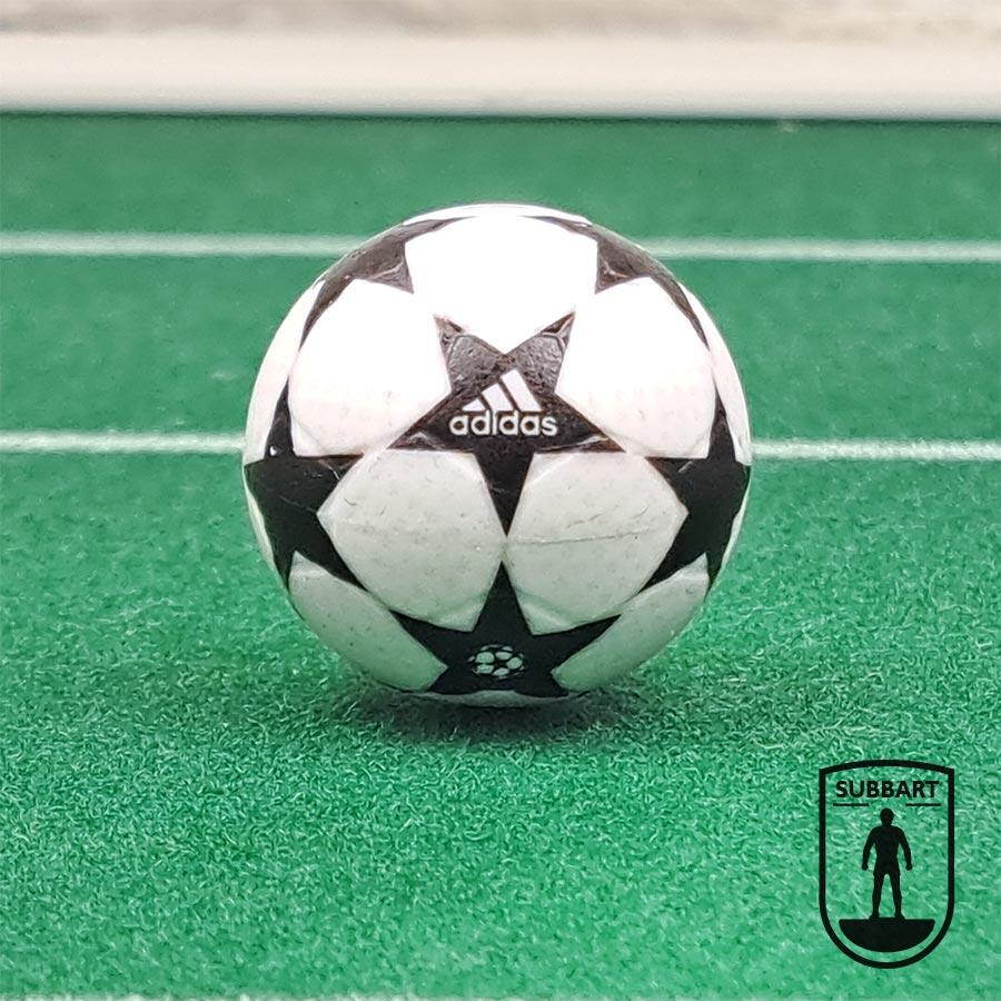 La pallina Subbuteo Champions League 2002/03 riproduce fedelmente il design del primo modello della linea “Finale” di Adidas.
