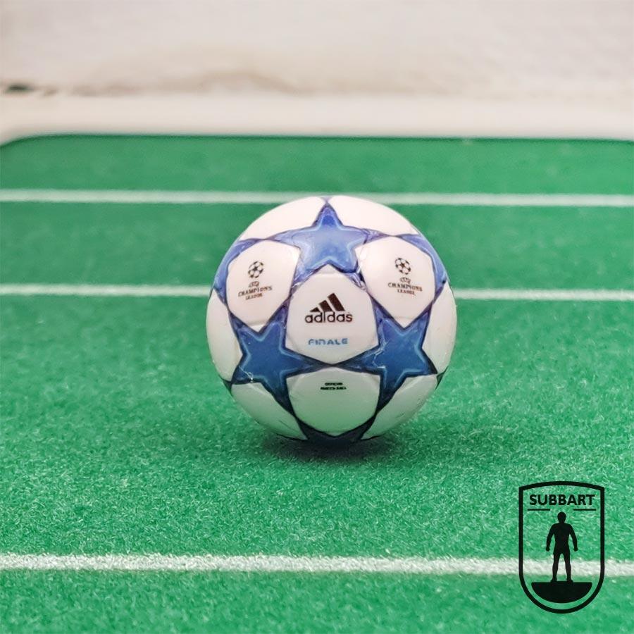 La pallina Champions League 2010/11 riproduce il design Adidas utilizzato durante tutta la stagione, prima della finale di Wembley. Le stelle blu su fondo bianco, con il logo ufficiale della competizione, rappresentano uno dei layout più iconici della storia recente.