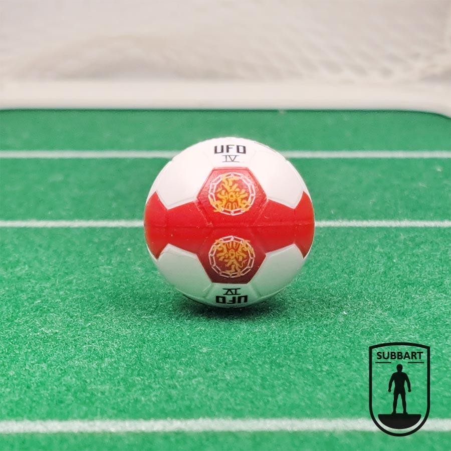 Questa versione Subbuteo ne riproduce fedelmente i dettagli: base bianca, pannelli rossi, scritte nere e un’estetica che richiama i campi fangosi e le reti quadrate di un’epoca passata.