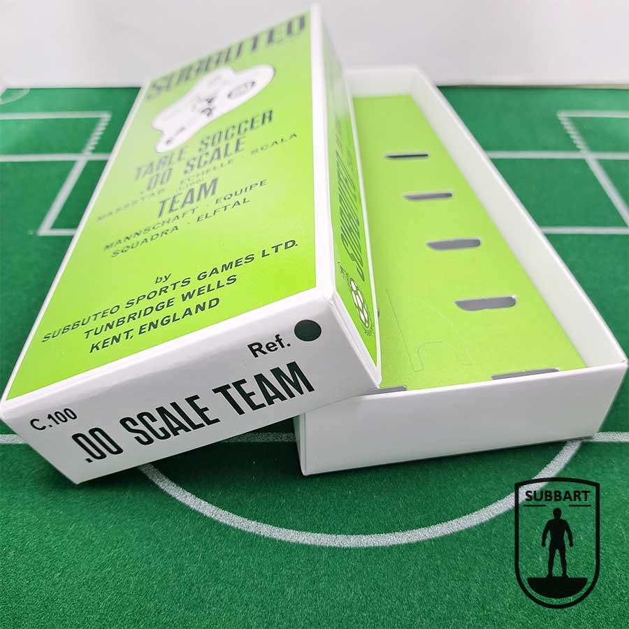 Con il suo colore verde acceso, il logo classico e la scritta “TABLE SOCCER 00 SCALE TEAM”, è diventata un simbolo del Subbuteo d’epoca, capace di evocare ricordi e partite indimenticabili.