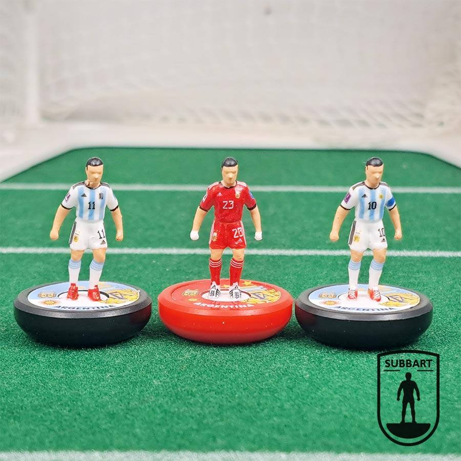 Ogni miniatura è rifinita a mano con precisione assoluta, riproducendo l'iconica maglia a strisce celesti e bianche con i dettagli dorati del mondiale qatariota. Dalla numerazione precisa alla fisionomia dei protagonisti, questo kit è pensato per i collezionisti che desiderano possedere un pezzo di storia del calcio e per i giocatori che cercano una squadra dal carisma impareggiabile.
