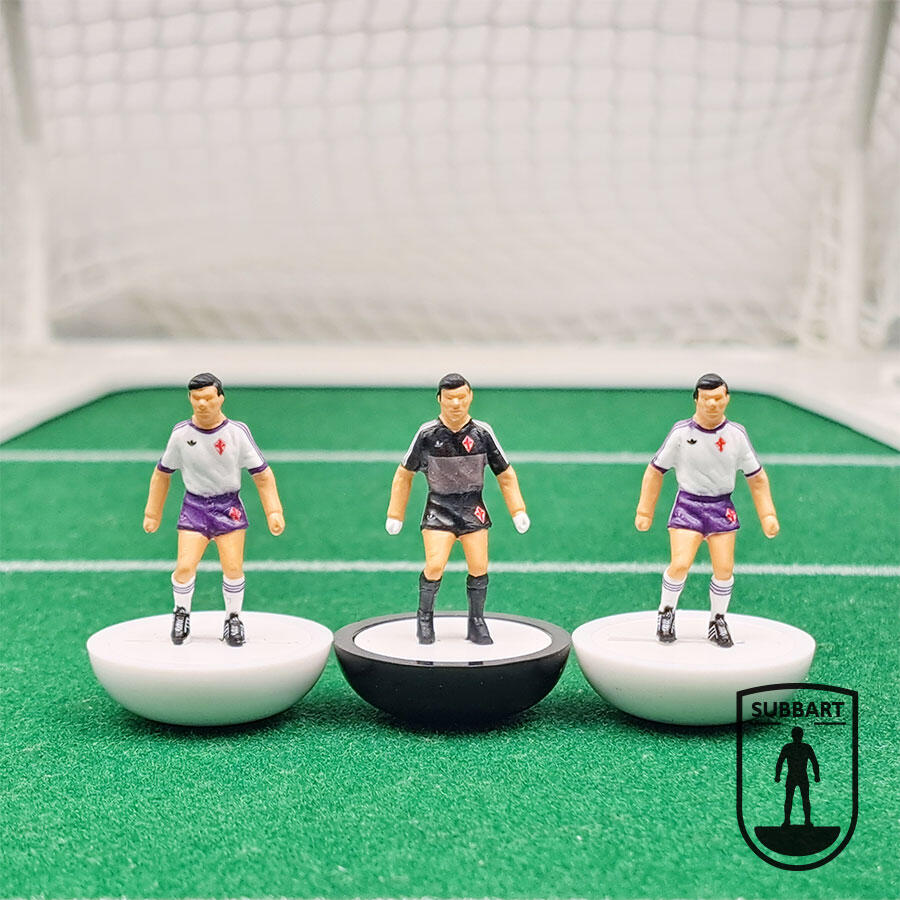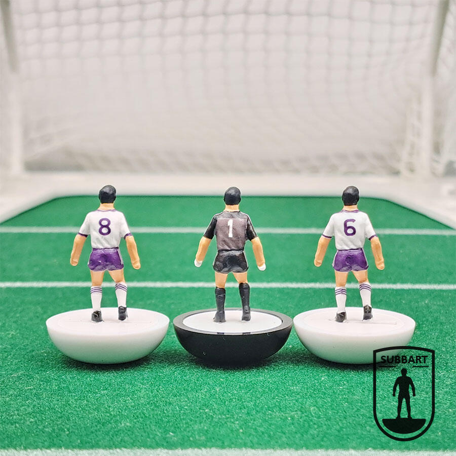 Questa squadra Subbuteo riproduce con grande cura la divisa away della stagione 1980/81. Ogni miniatura è dipinta a mano, rispettando colori, dettagli e proporzioni originali, per offrire un prodotto di alta qualità.