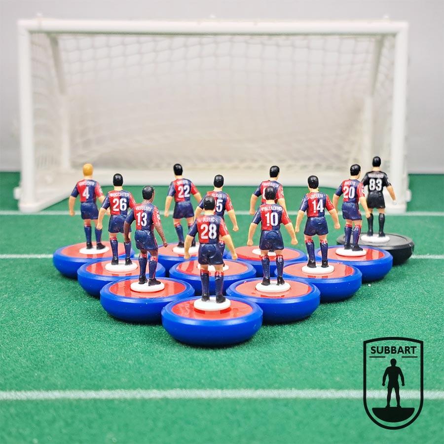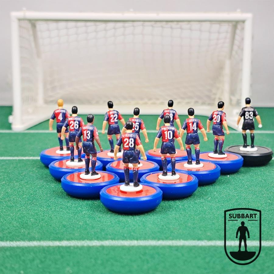 In questo kit abbiamo voluto catturare l'anima della squadra che ha fatto sognare la Gradinata Nord, centrando la qualificazione in Europa League. Le miniature riproducono fedelmente la classica divisa a quarti rosso e blu, con una cura maniacale per i dettagli: dallo stemma del club sul petto alla precisione delle sfumature cromatiche. Ogni miniatura è rifinita a mano per offrire un realismo senza pari, perfetta sia per essere schierata in campo che per occupare un posto d'onore in bacheca.